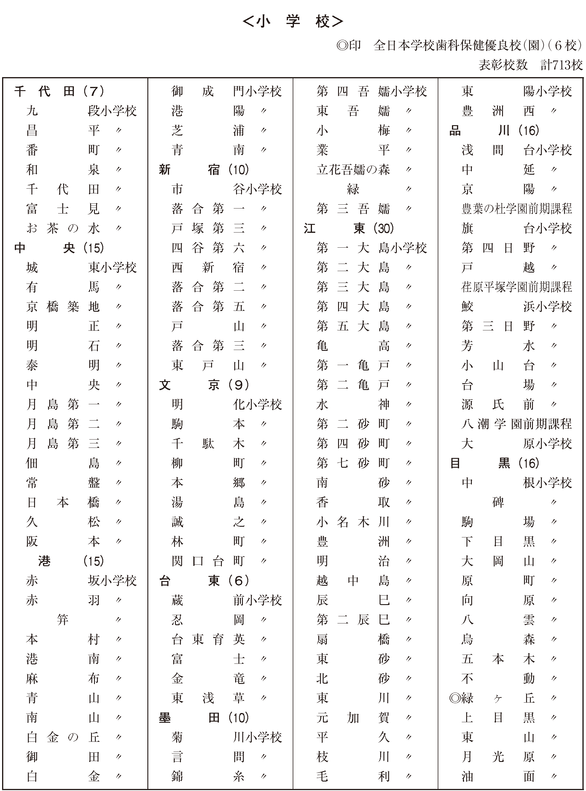 東京都学校歯科保健優良校表彰