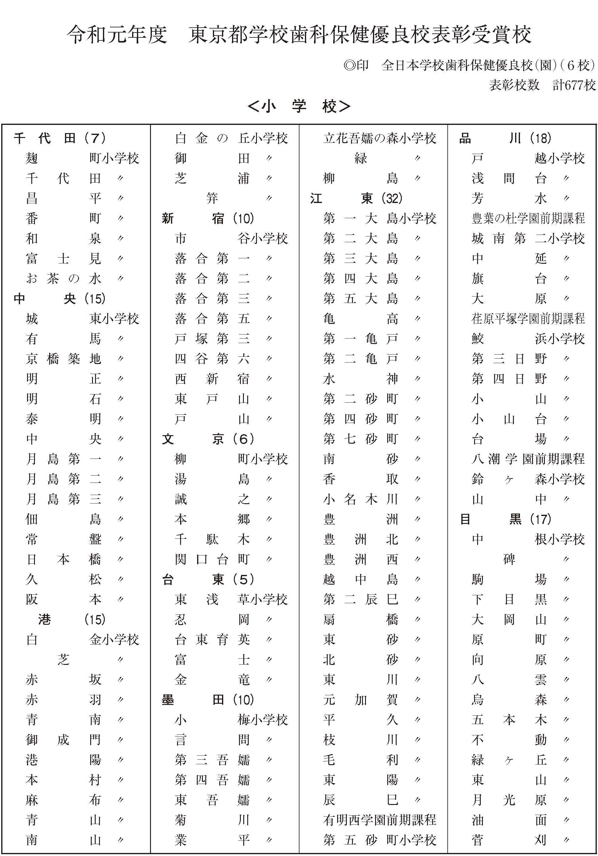 • 東京都学校歯科保健優良校表彰