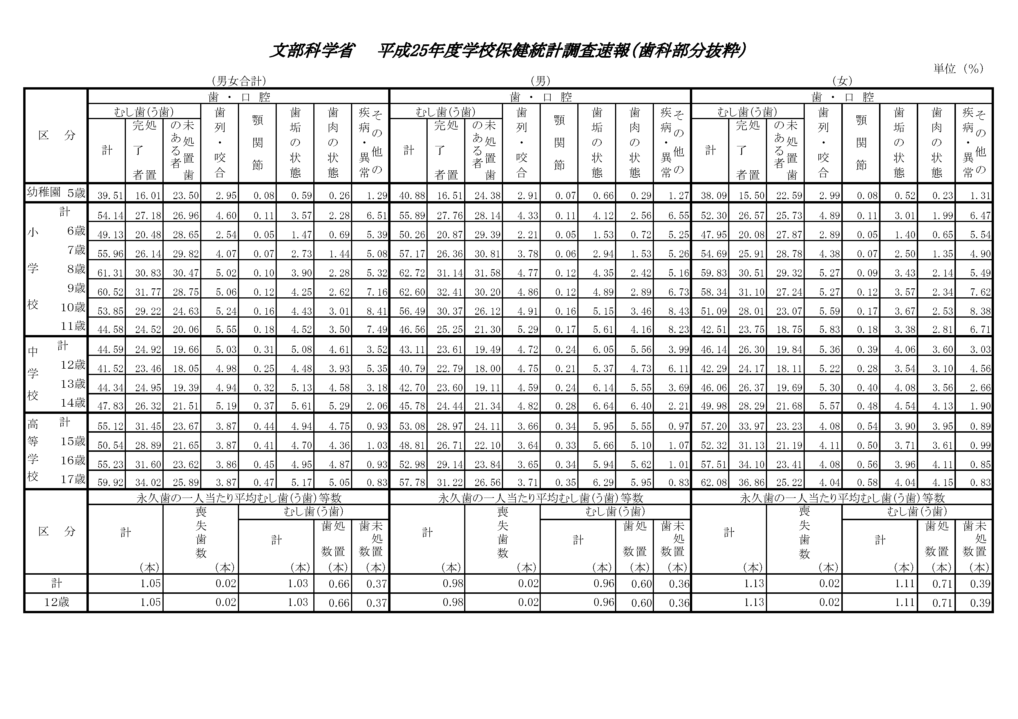 印刷用ダウンロード: 平成25年度学校保健統計調査速報-歯科部分抜粋-