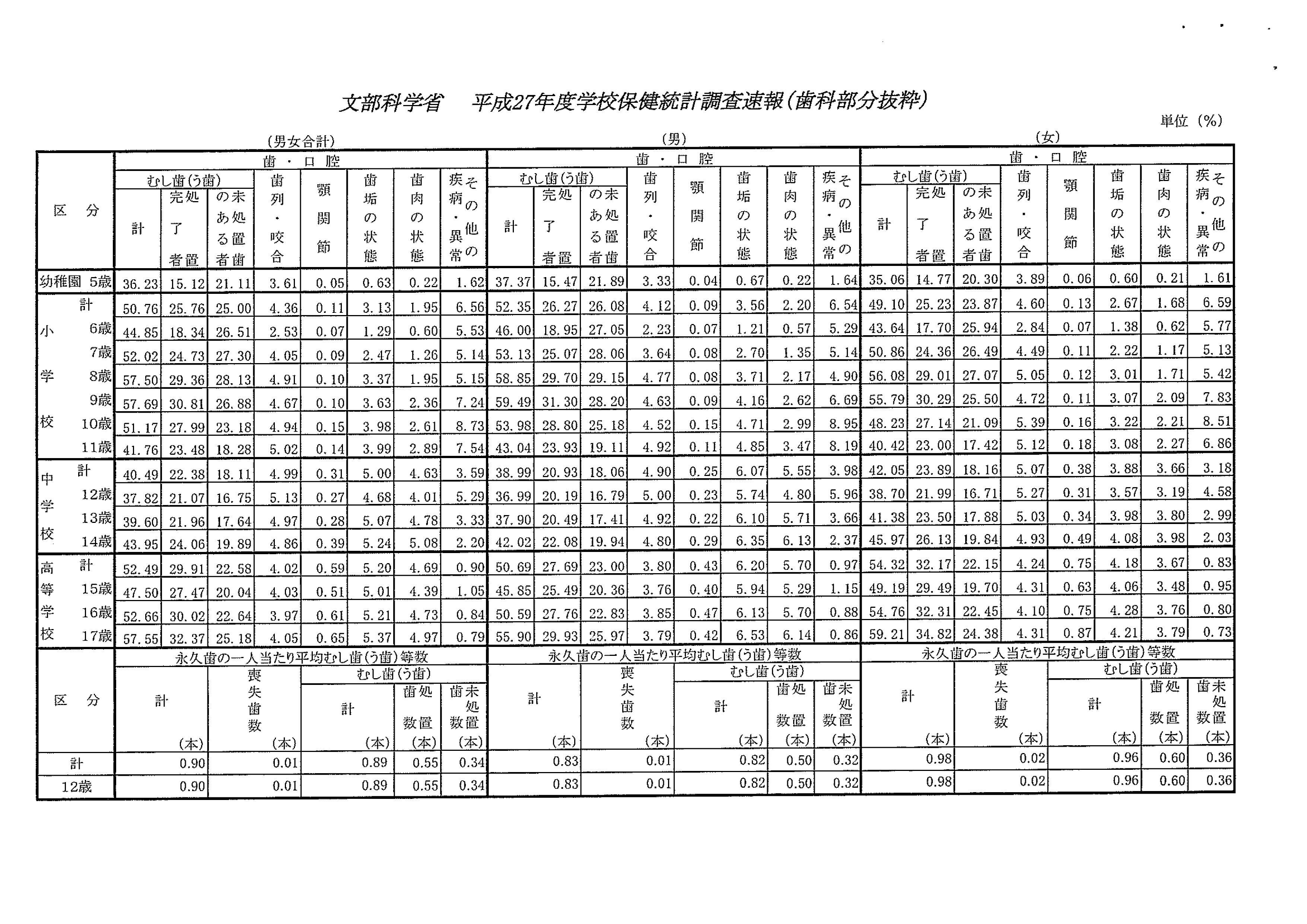 平成27年度学校保健統計調査速報-歯科部分抜粋-