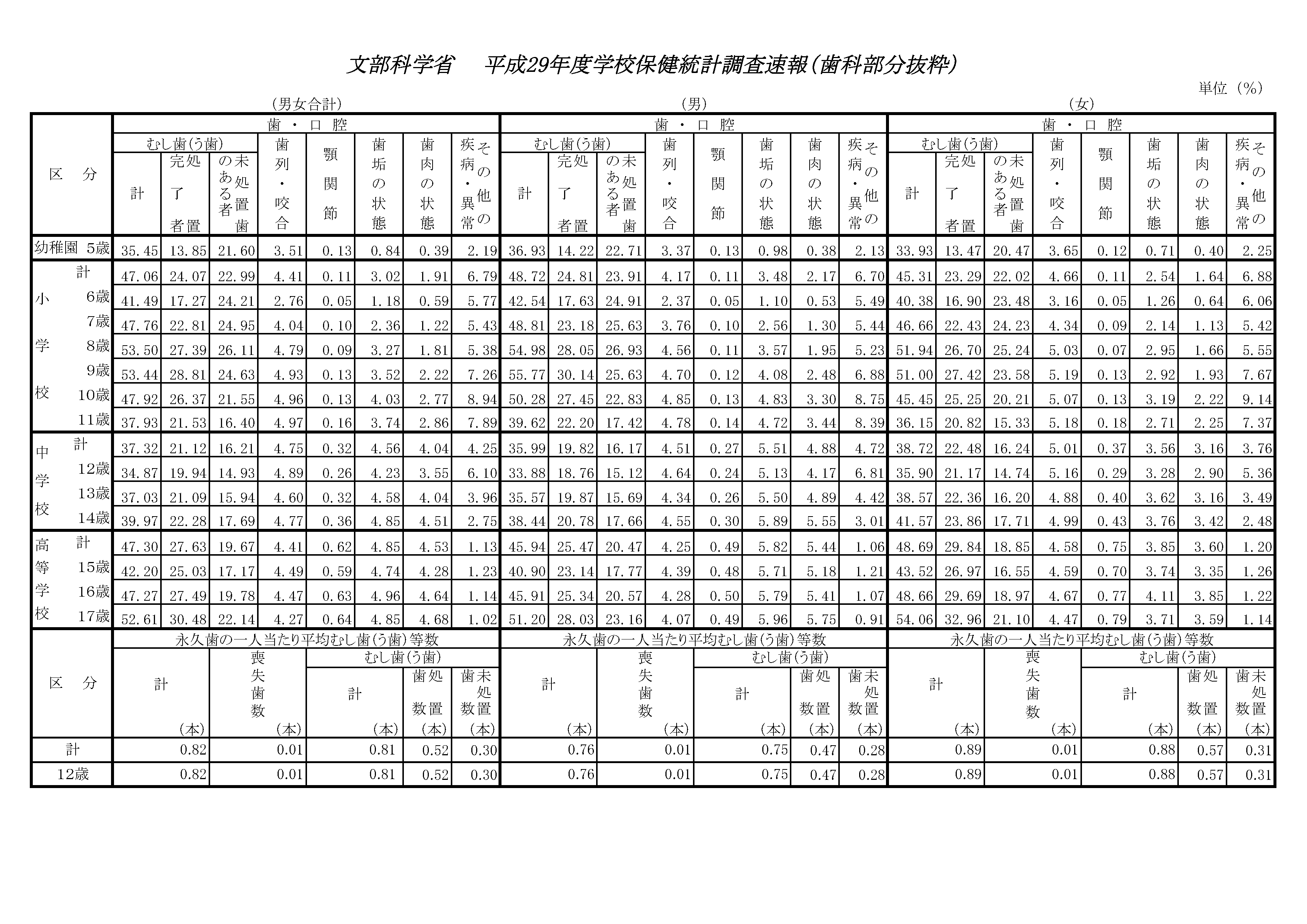 平成29年度学校保健統計調査速報-歯科部分抜粋-