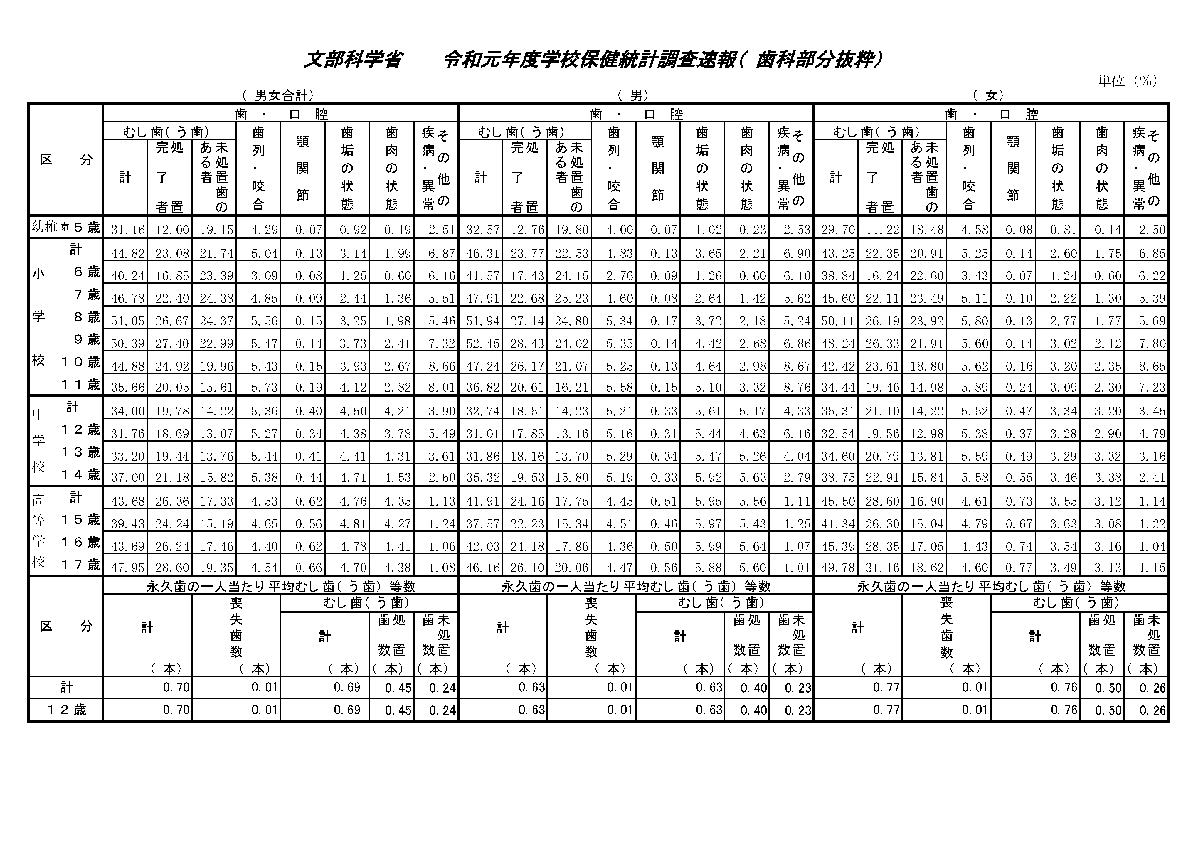 令和元年度学校保健統計調査速報-歯科部分抜粋-