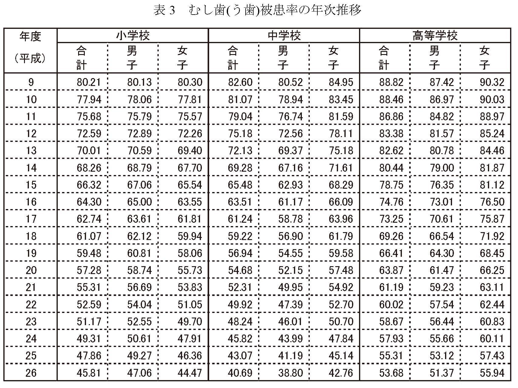 印刷用ダウンロード: 平成26年度東京都の学校保健統計書|歯科疾患|(抜粋)