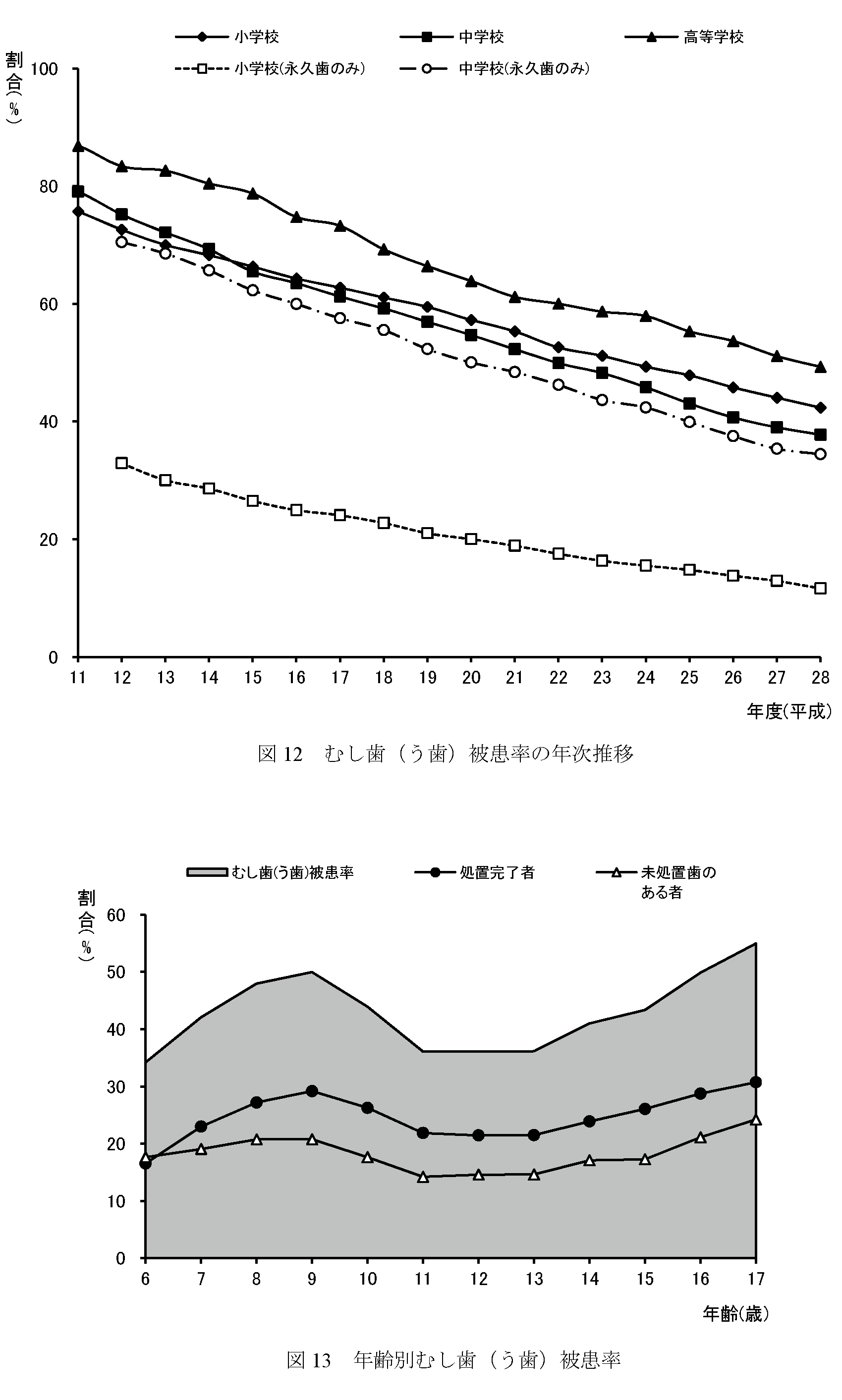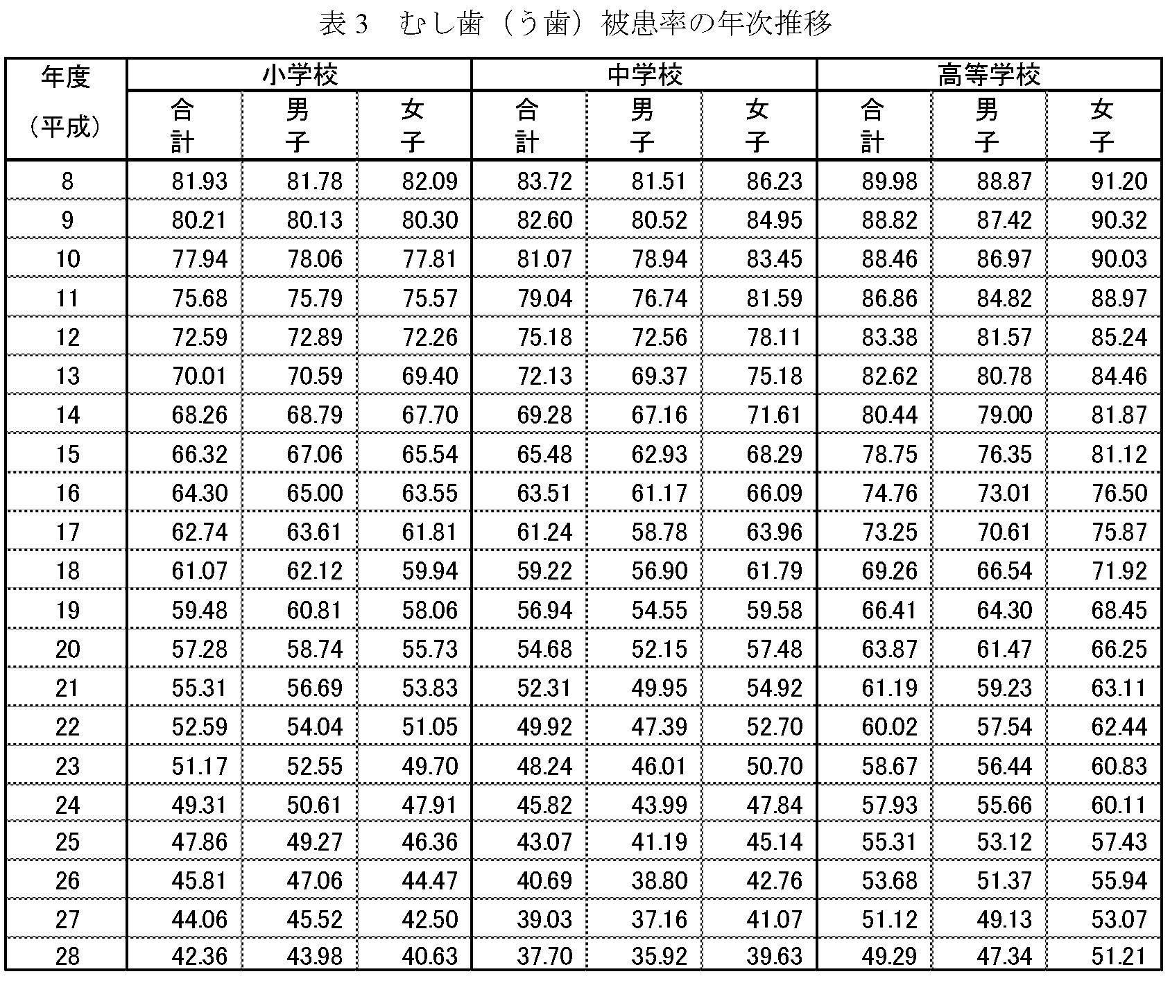 むし歯(う歯)被患率について (表3、図12、図13、図14) |