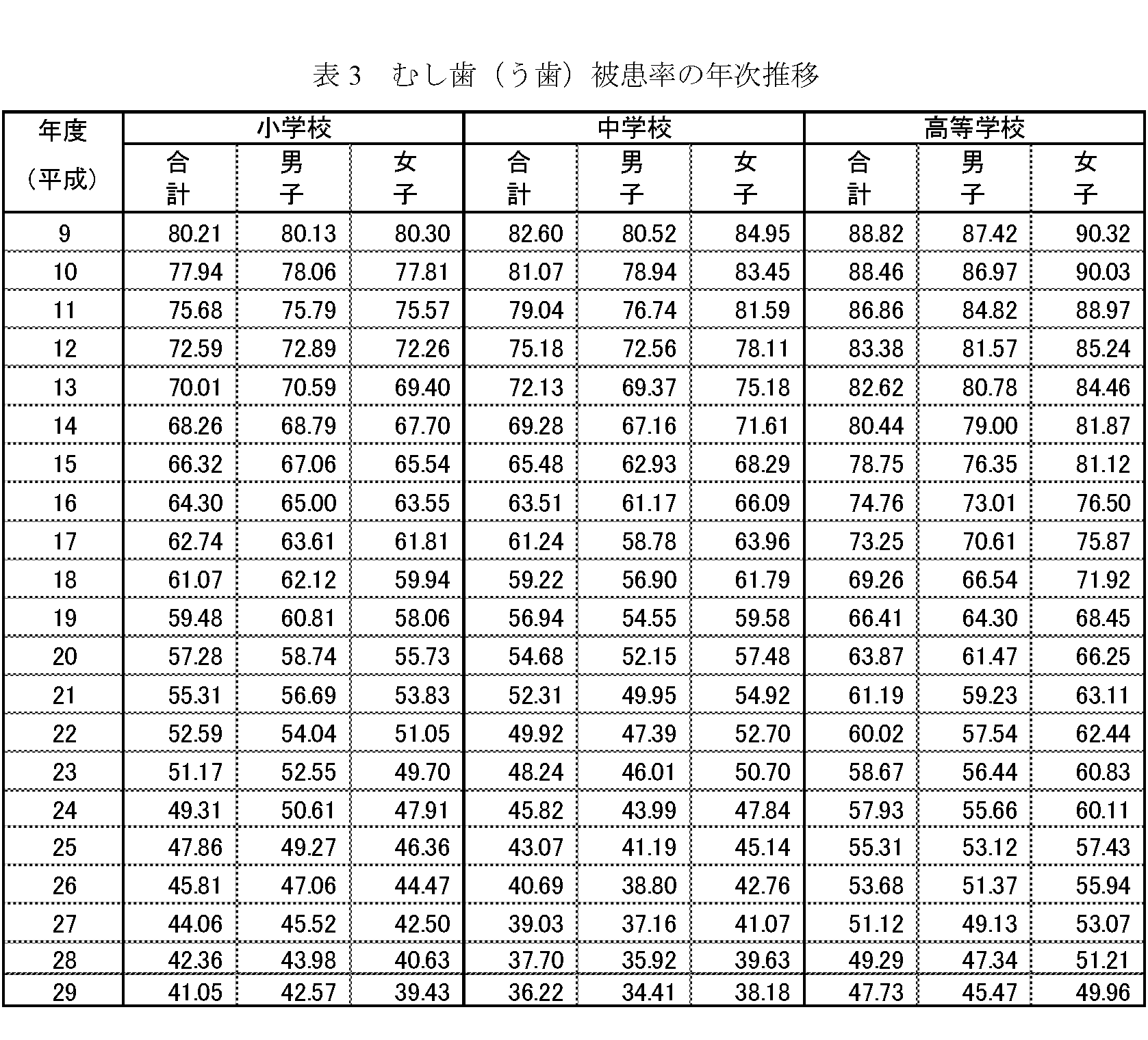 | 印刷用ダウンロード: 平成29年度東京都の学校保健統計書|歯科疾患|(抜粋) |