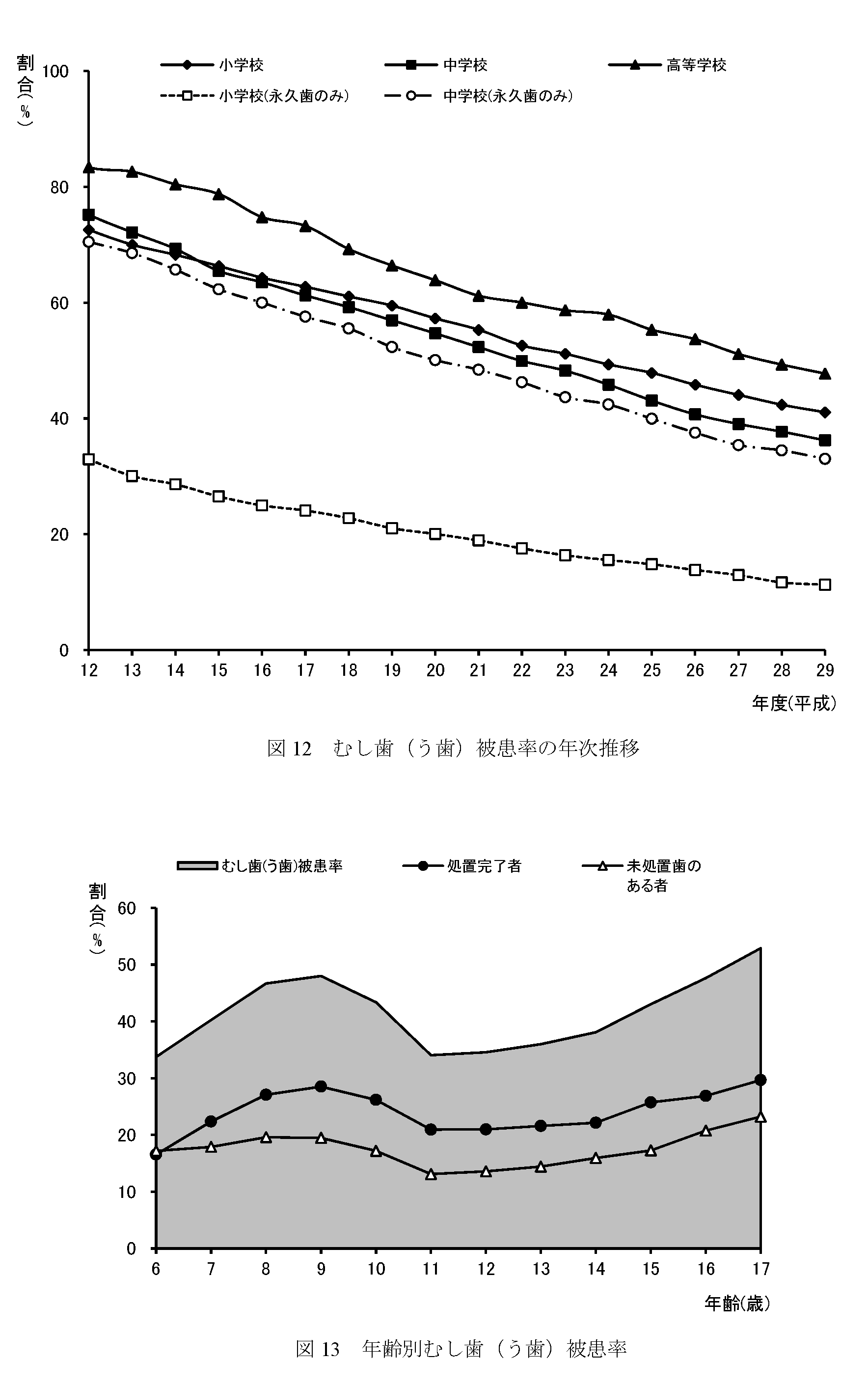 むし歯(う歯)被患率について (表3、図12、図13、図14、図15) |