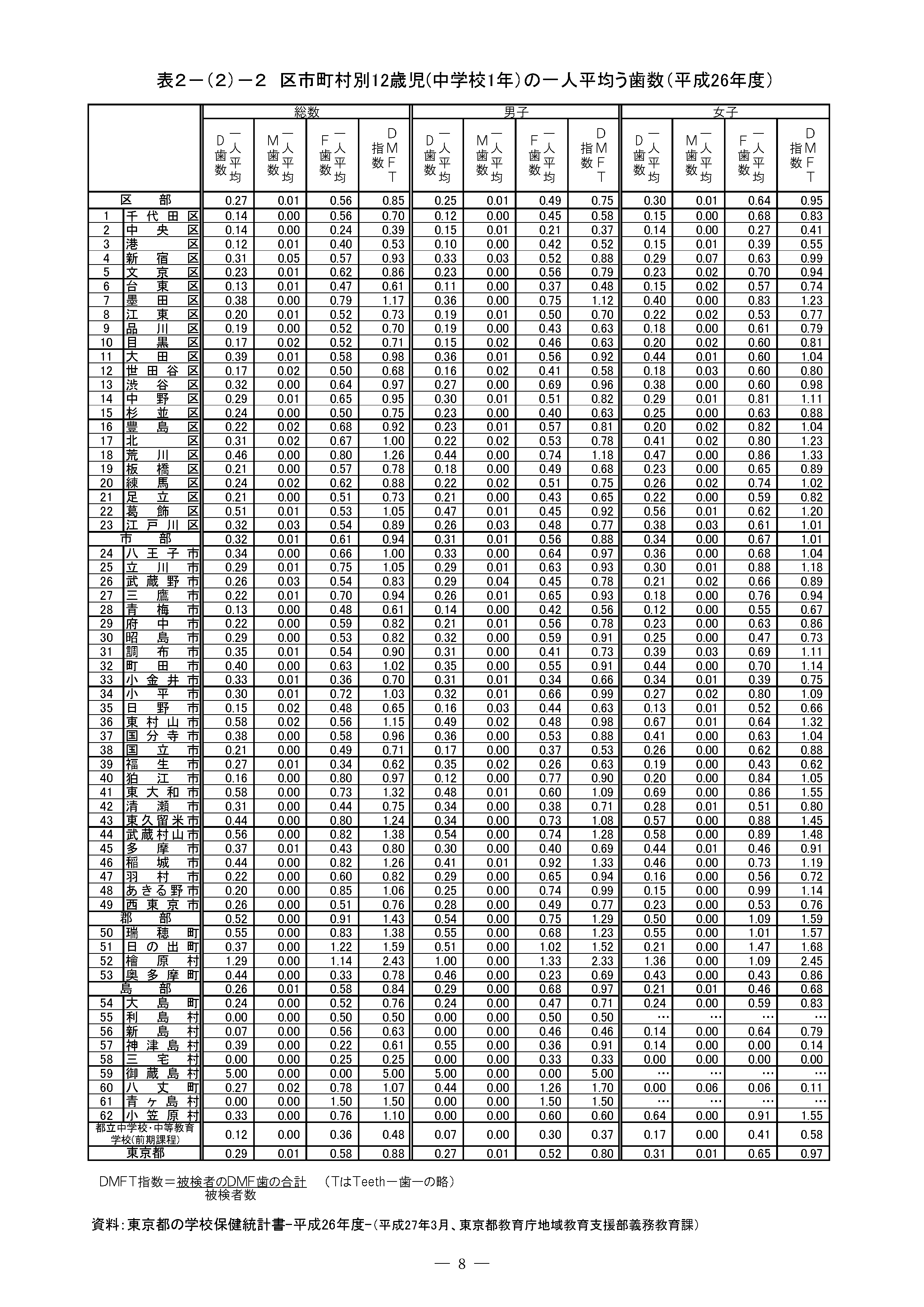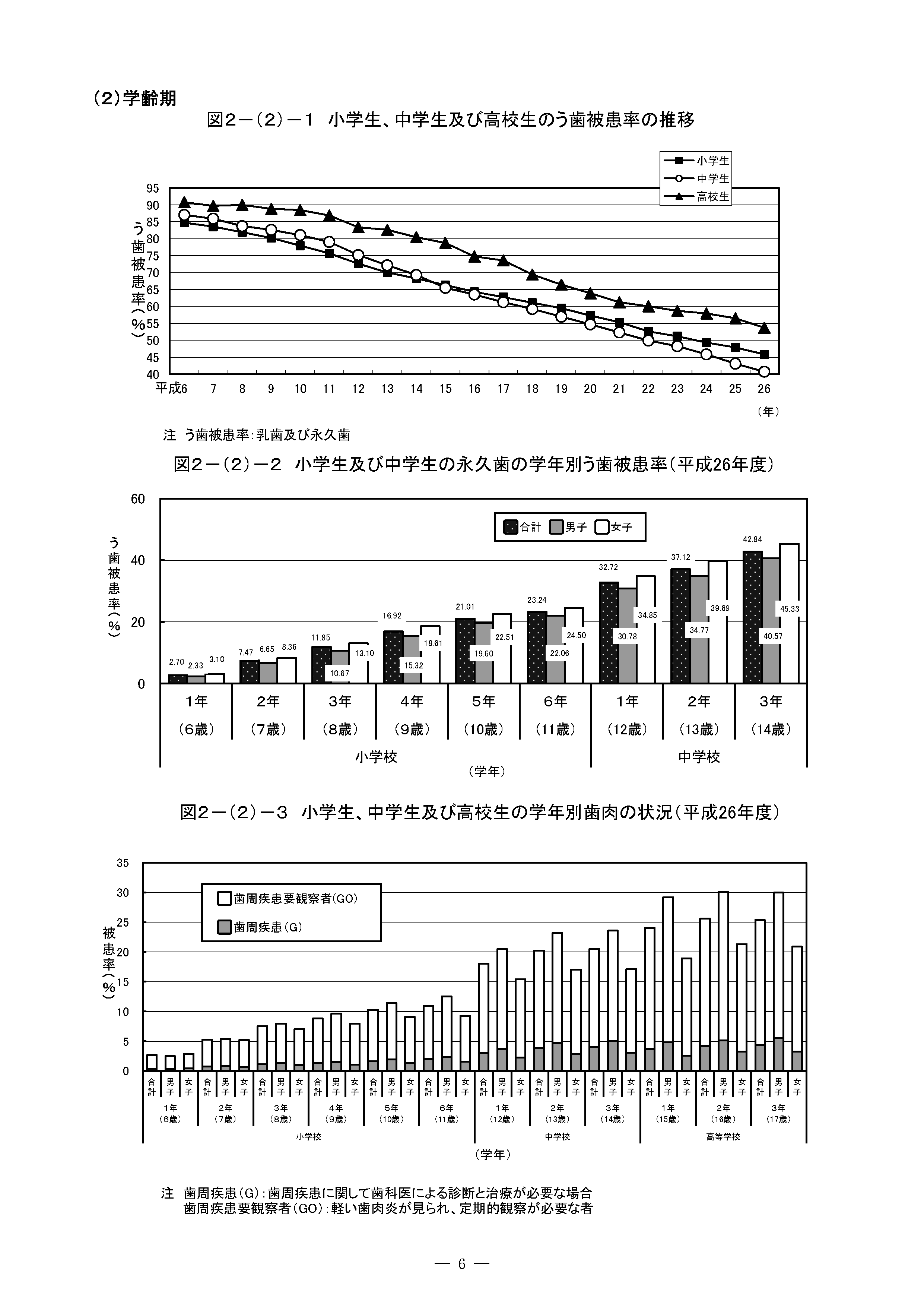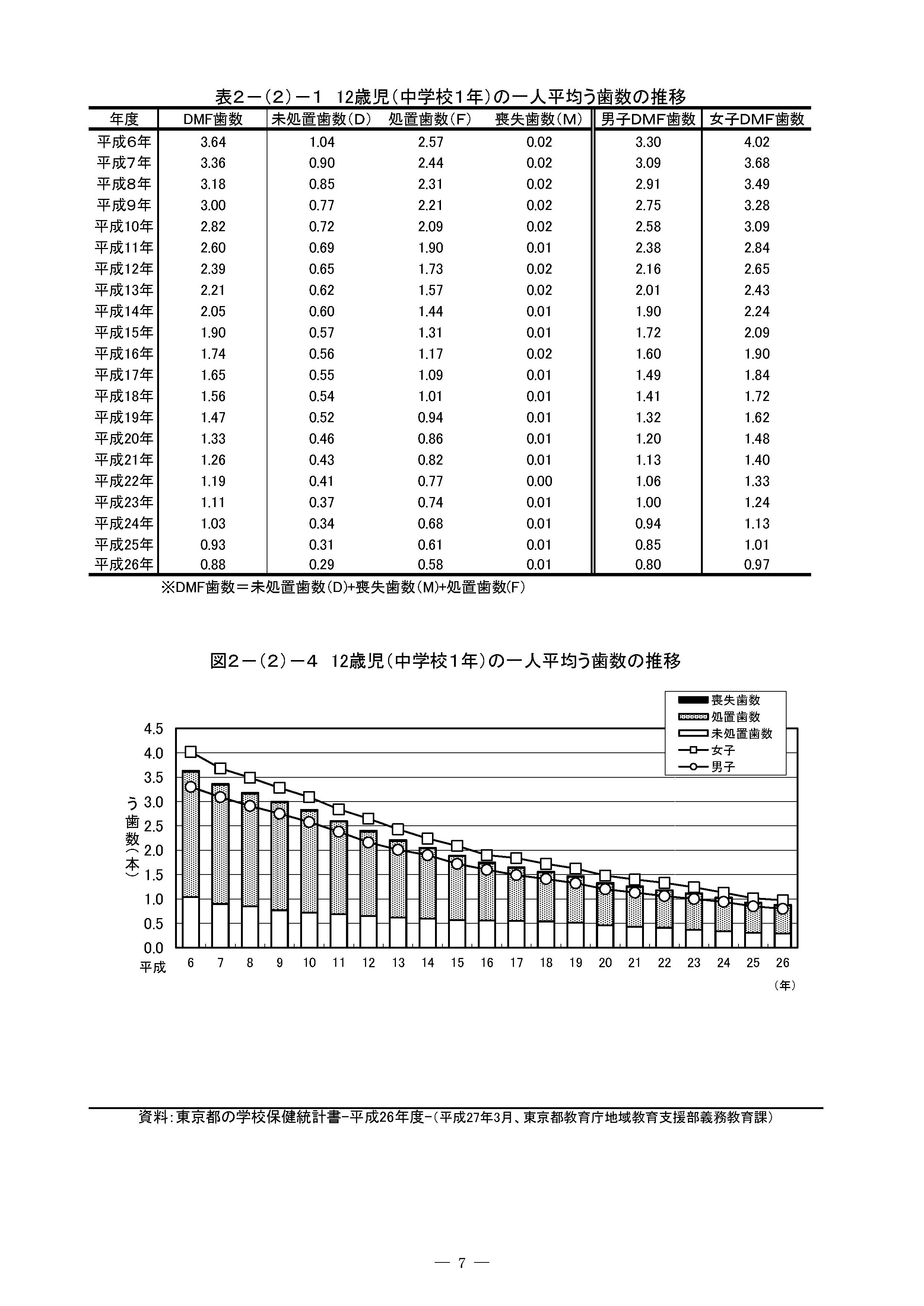 『東京の歯科保健—東京都歯科保健医療関係資料集—平成27年10月』の 2 歯科保健状況 2-(2) 学齢期 部分の抜粋