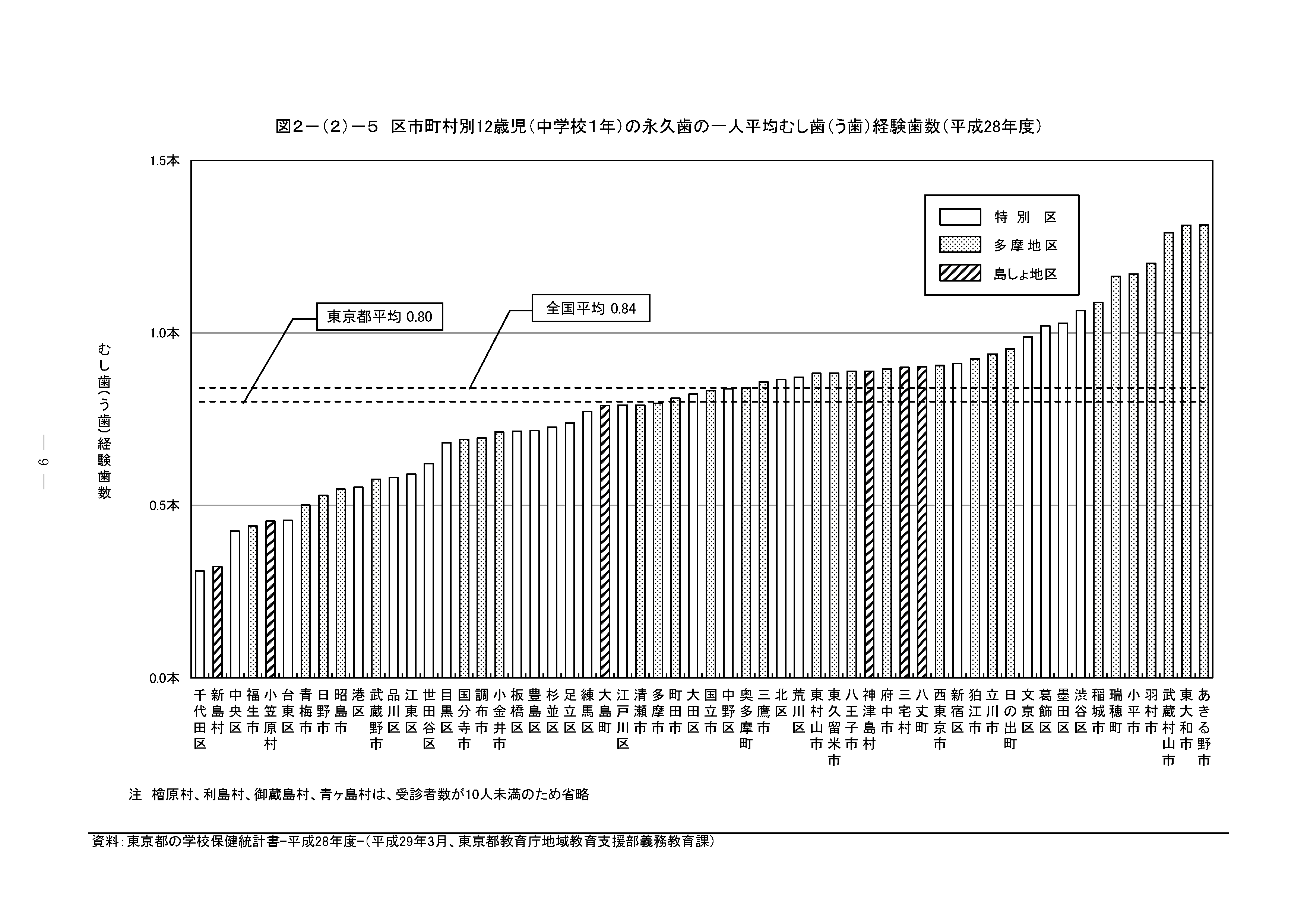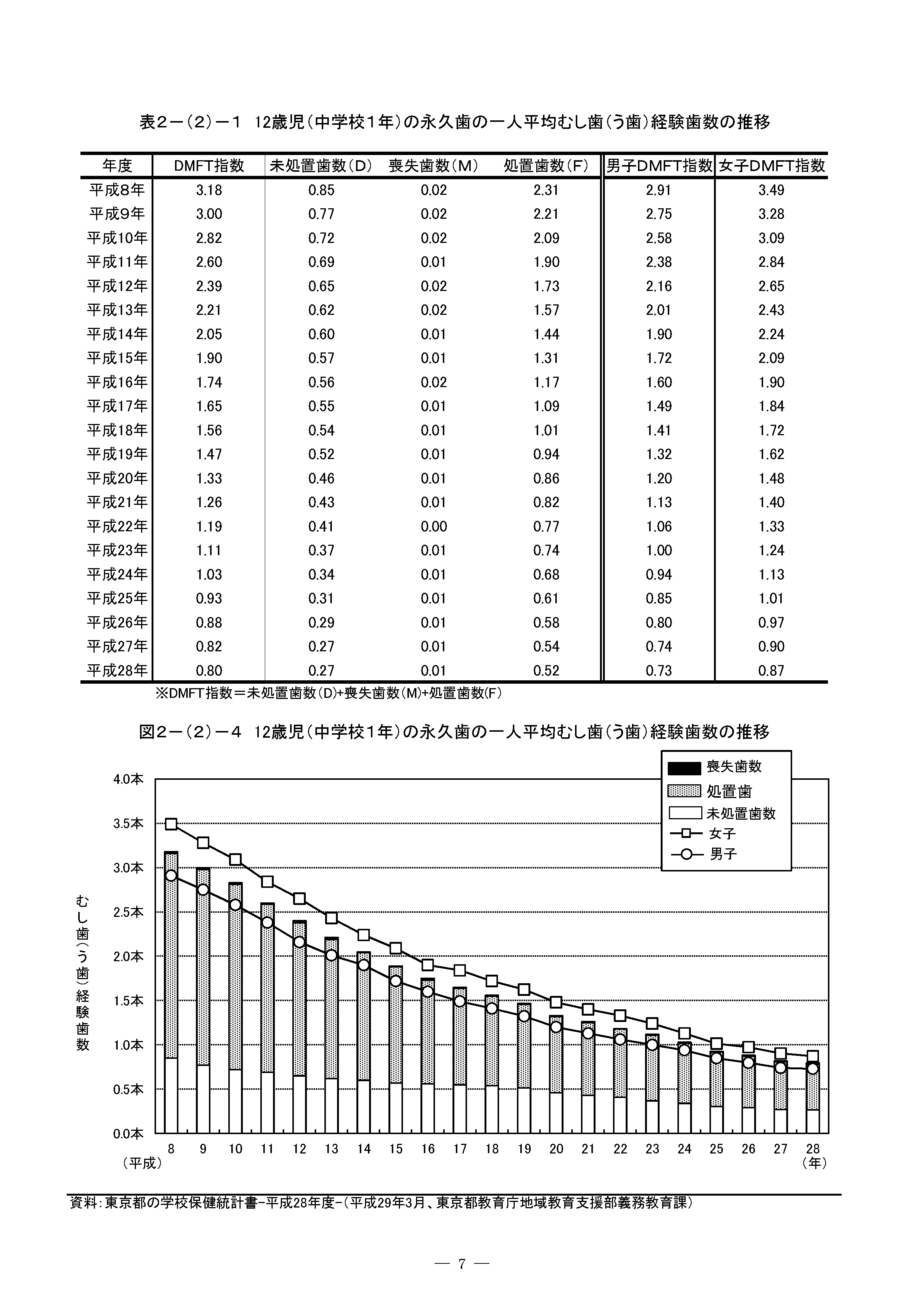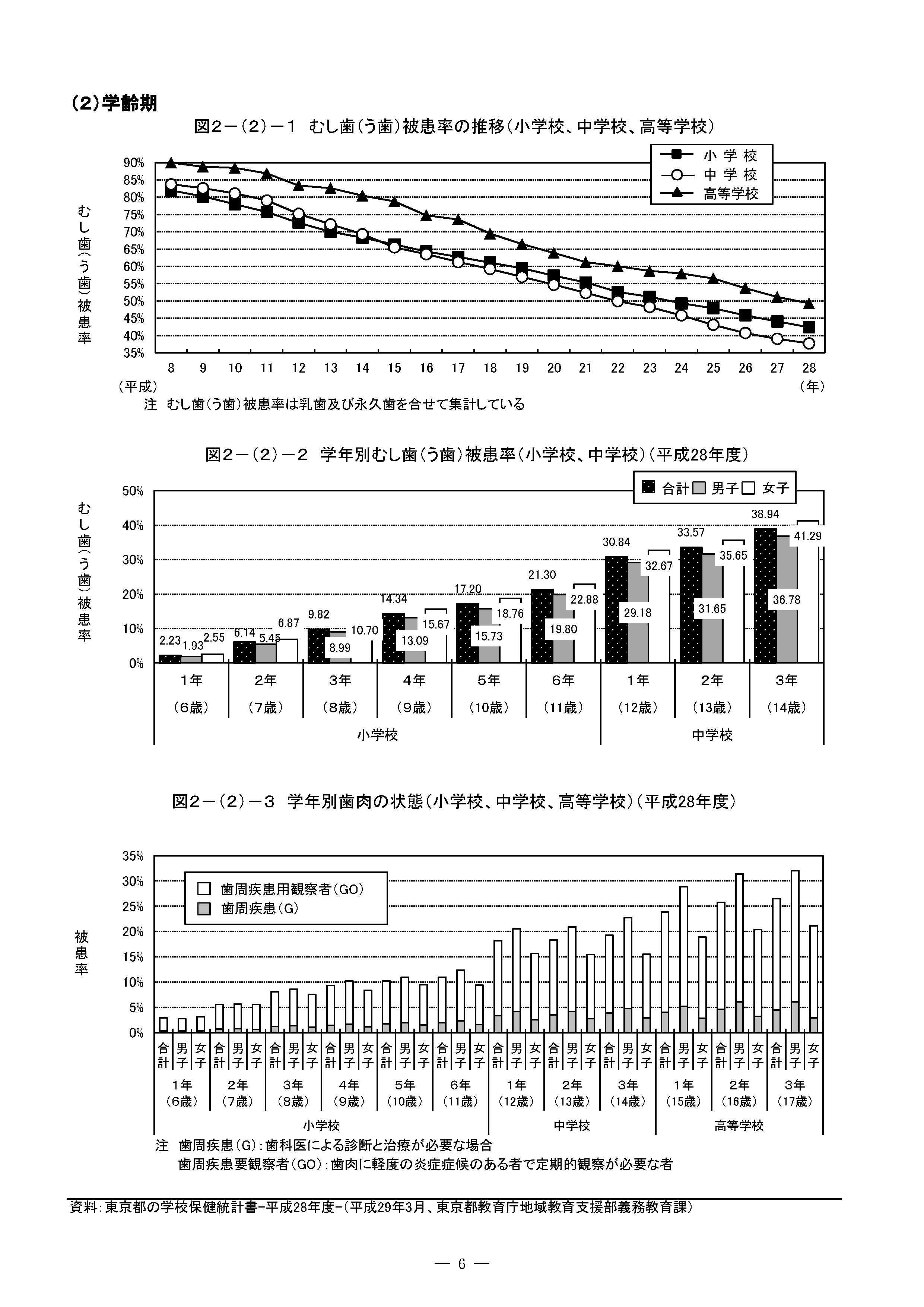 『東京の歯科保健—東京都歯科保健医療関係資料集—平成29年10月』の 2 歯科保健状況 2-(2) 学齢期 部分の抜粋